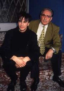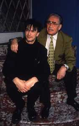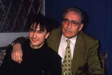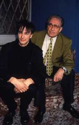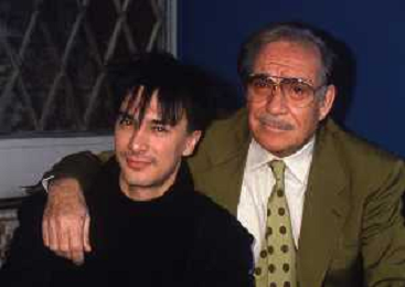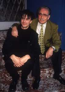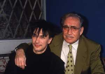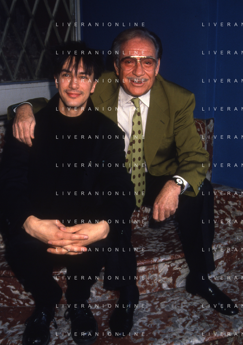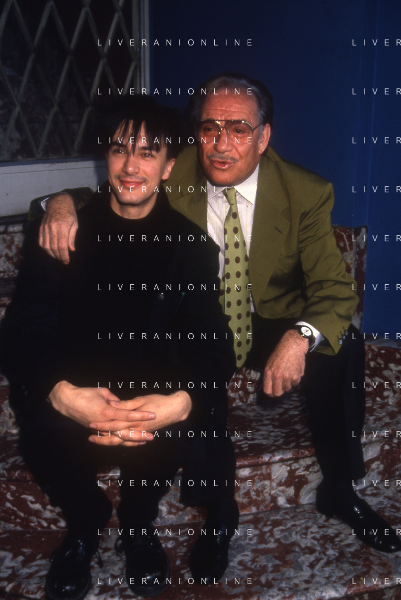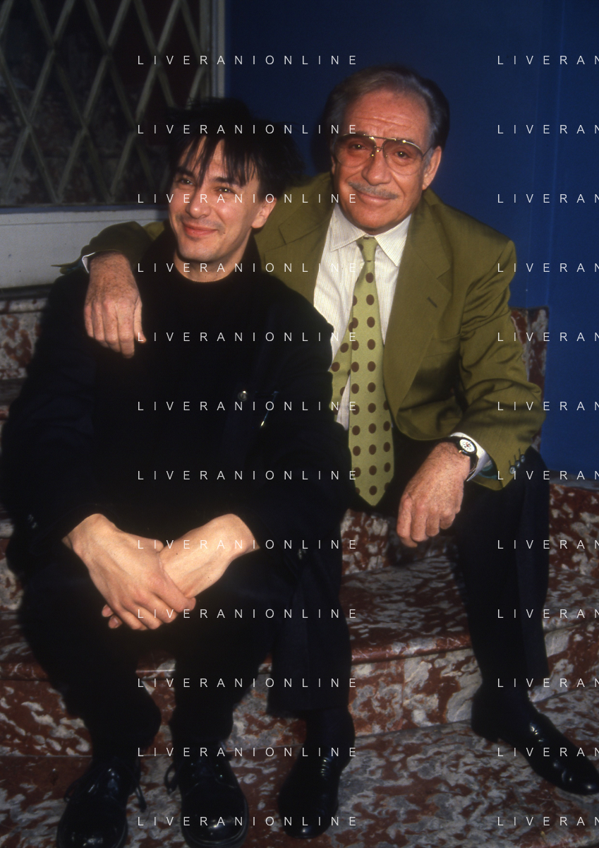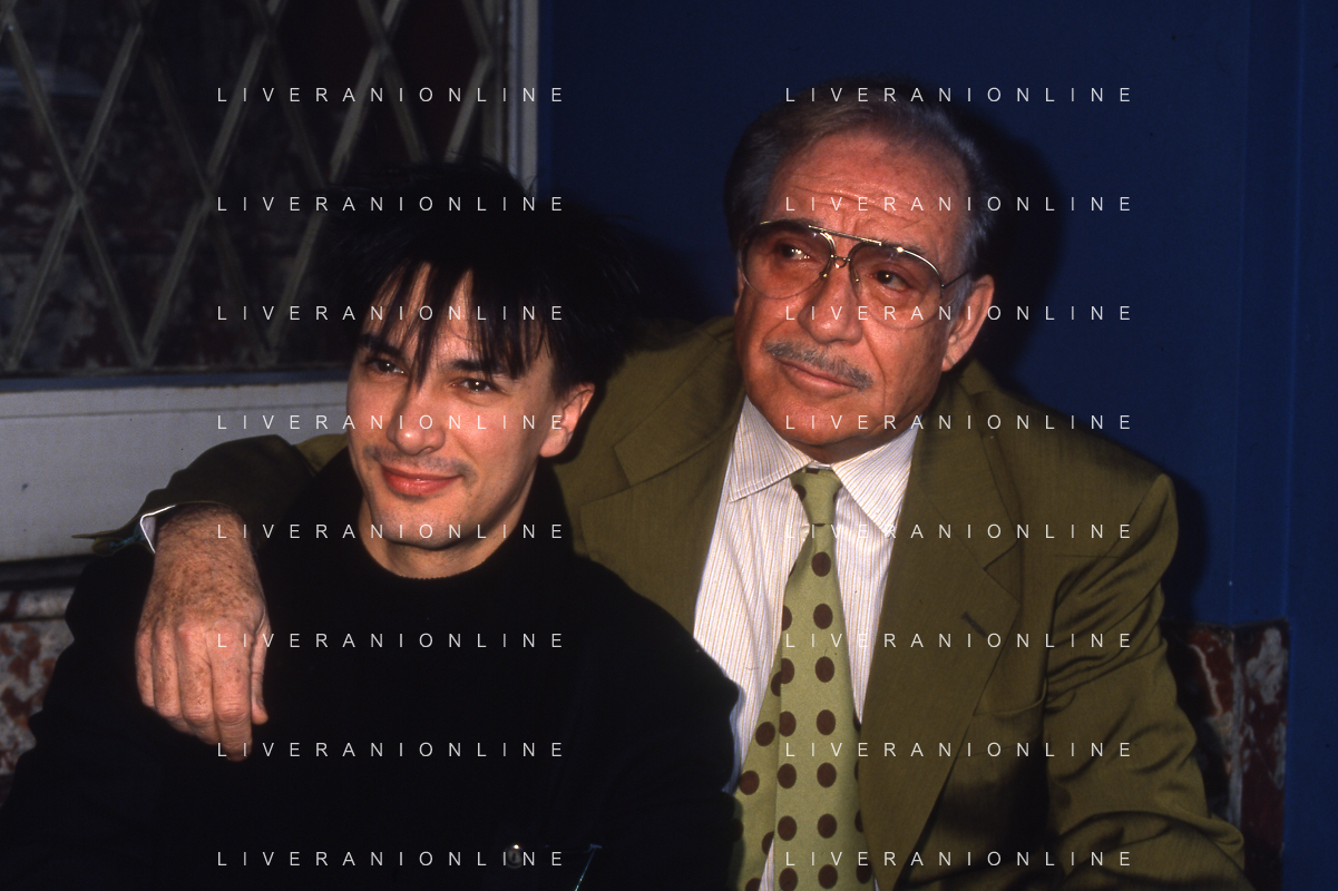 DIAP- RETROSPETTIVA UGO TOGNAZZI ATTORE NELLA FOTO UGO TOGNAZZI CON ARTURO BRACHETTI ALLA PRESENTAZIONE DELLA COMMEDIA MADAME BUTTERFLY A TERRAZZA MARTINI NELL'ANNO 1989 AGENZIA ALDO LIVERANI