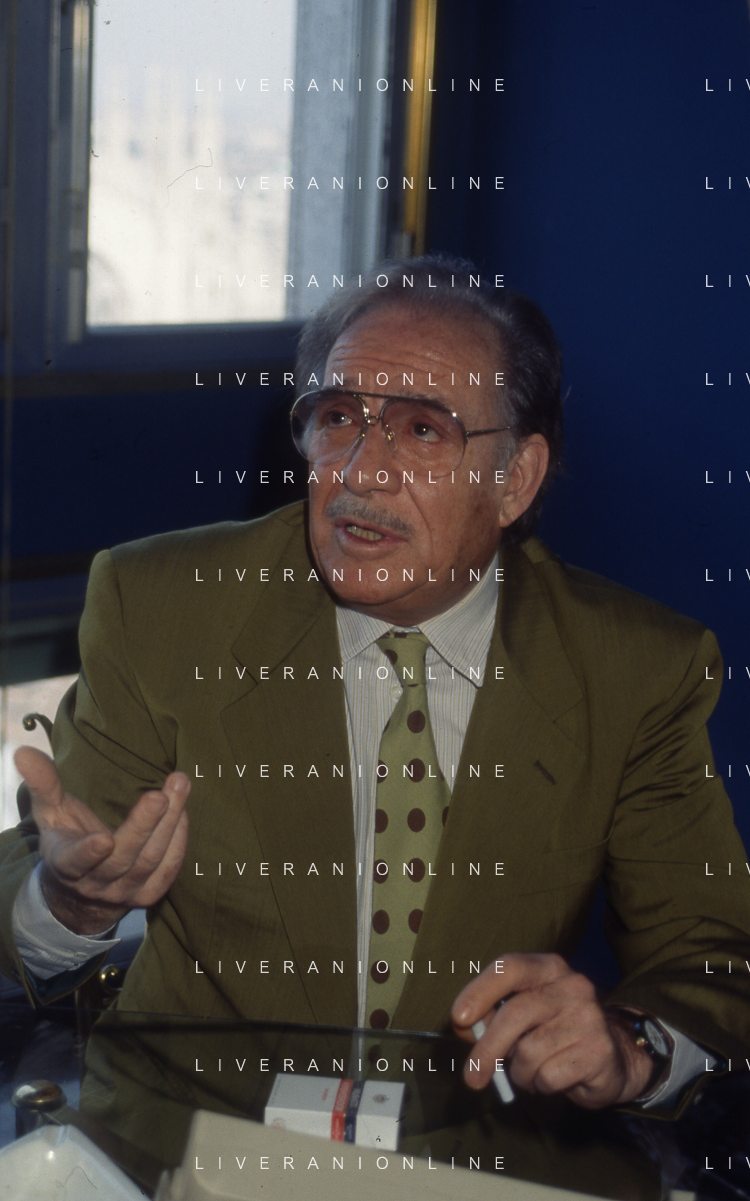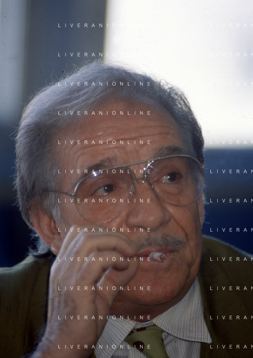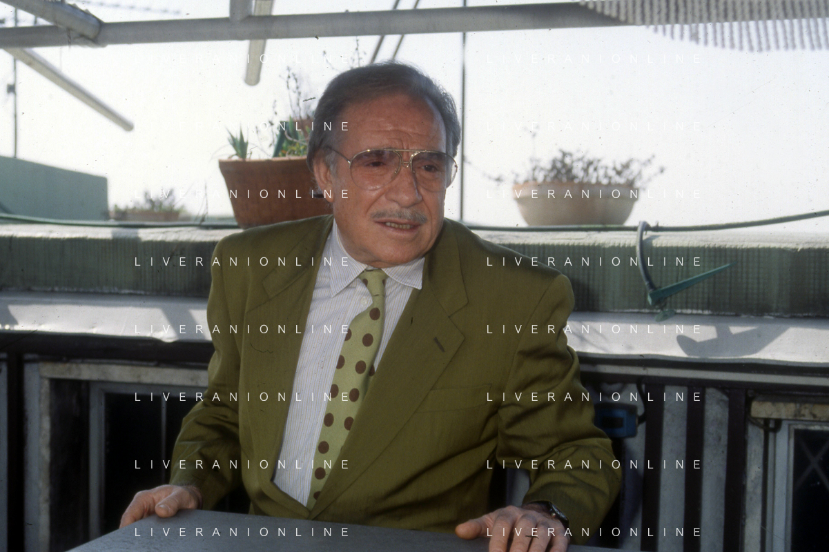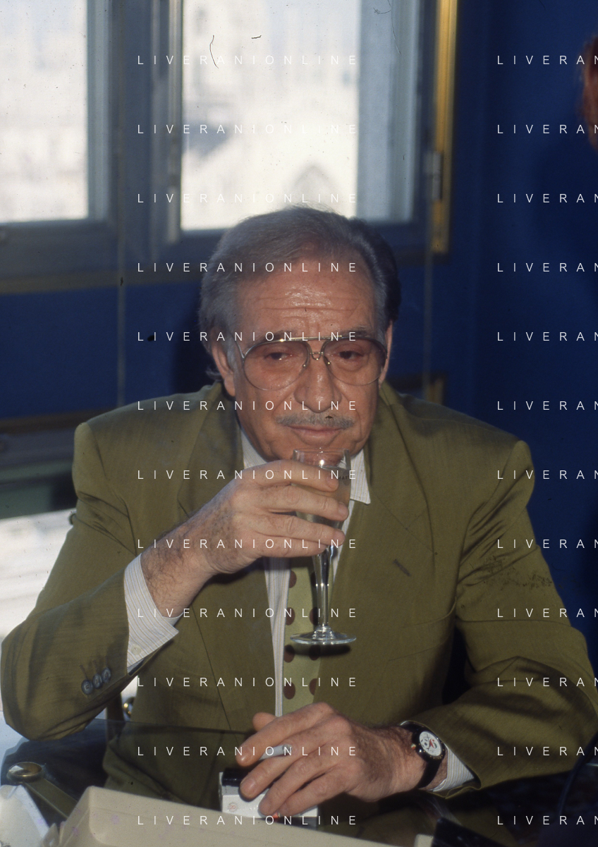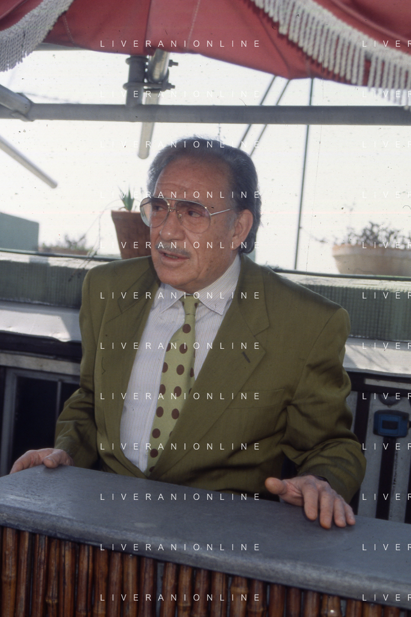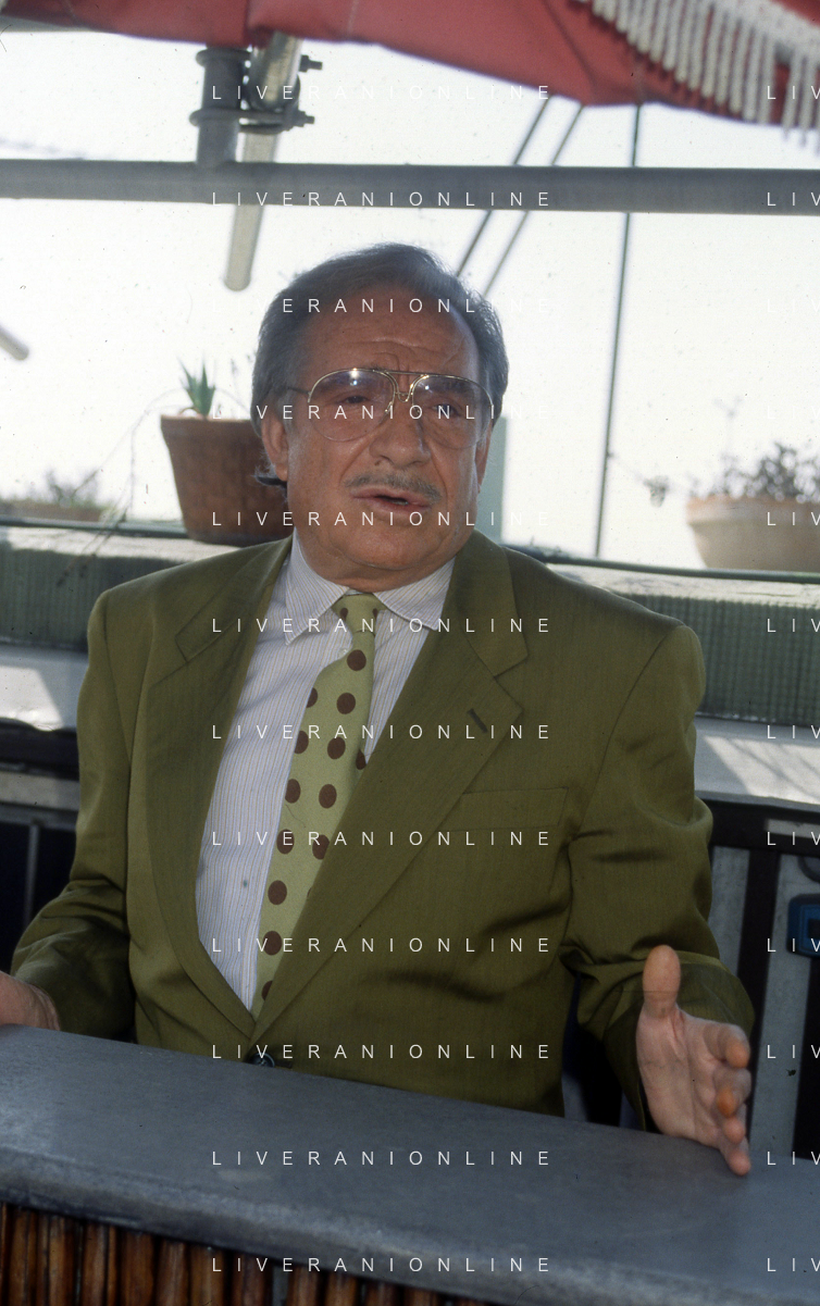 DIAP- RETROSPETTIVA UGO TOGNAZZI ATTORE NELLA FOTO UGO TOGNAZZI ALLA PRESENTAZIONE DELLA COMMEDIA MADAME BUTTERFLY A TERRAZZA MARTINI NELL'ANNO 1989 AGENZIA ALDO LIVERANI