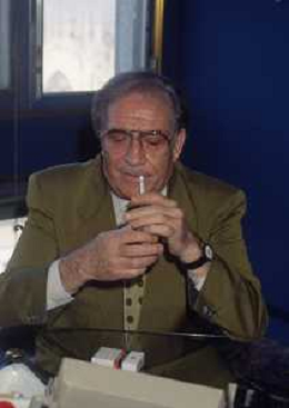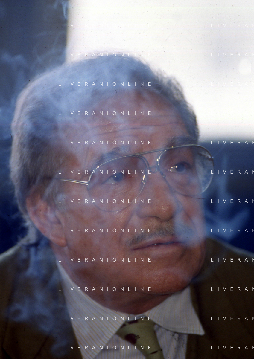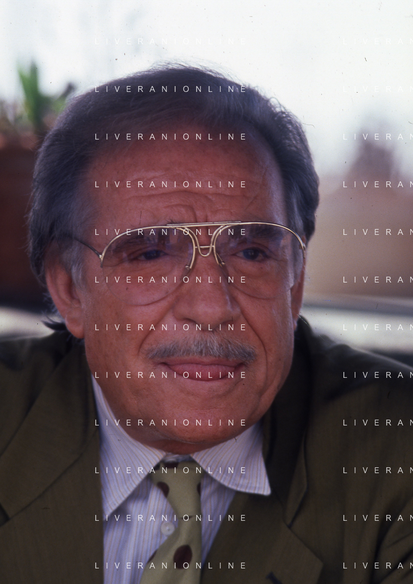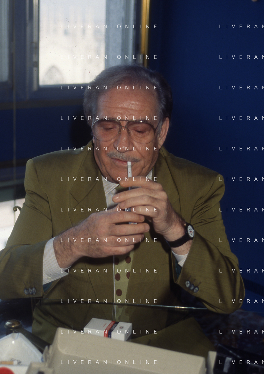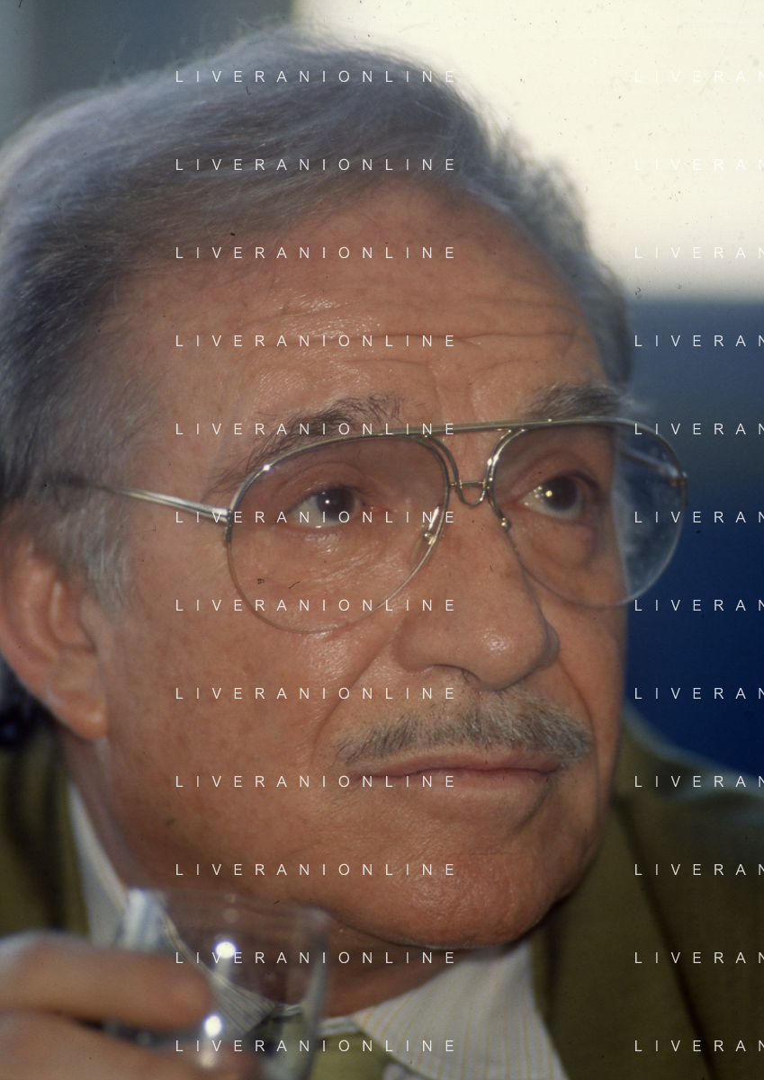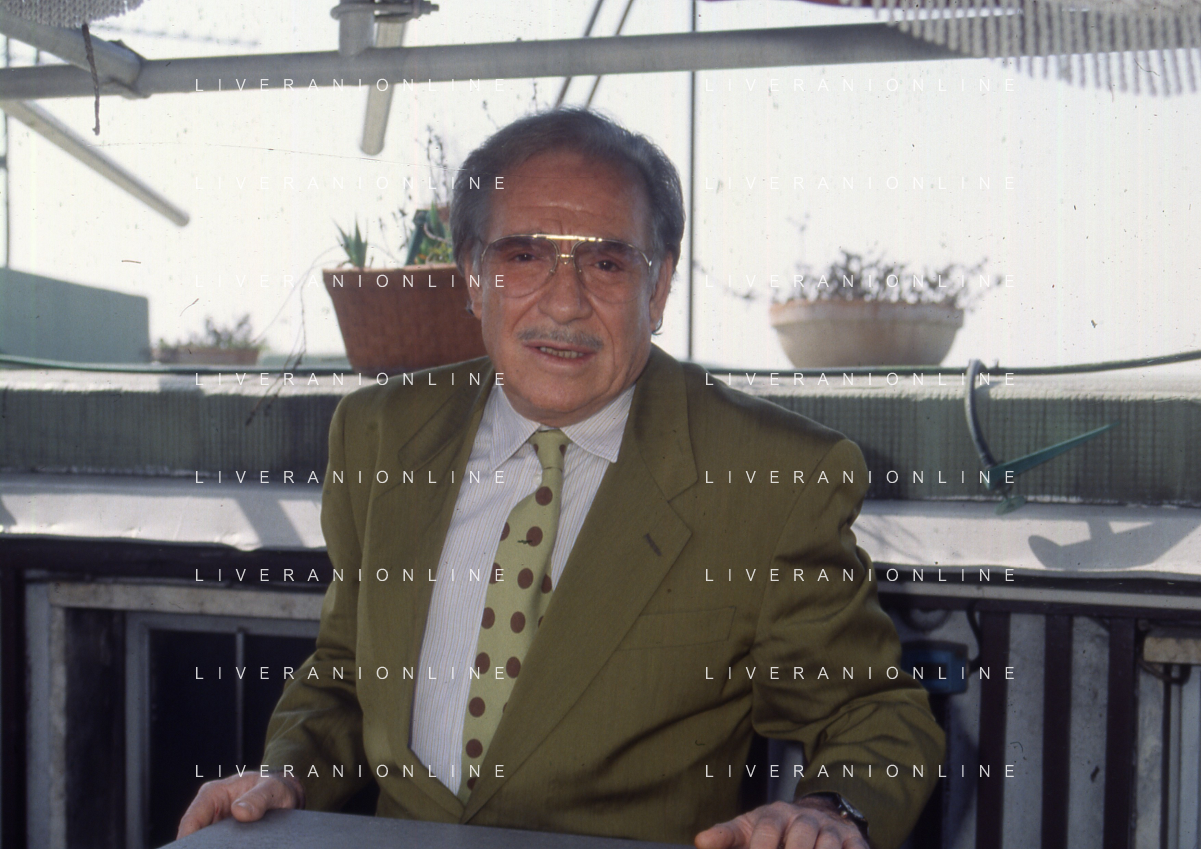 DIAP- RETROSPETTIVA UGO TOGNAZZI ATTORE NELLA FOTO UGO TOGNAZZI ALLA PRESENTAZIONE DELLA COMMEDIA MADAME BUTTERFLY A TERRAZZA MARTINI NELL'ANNO 1989 AGENZIA ALDO LIVERANI