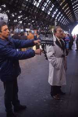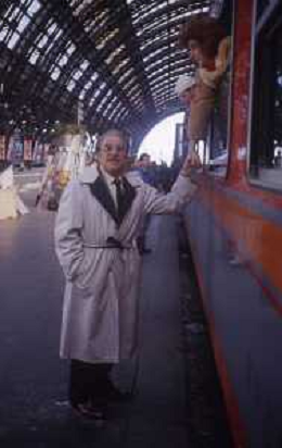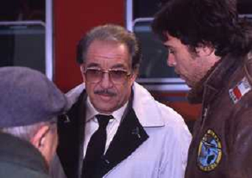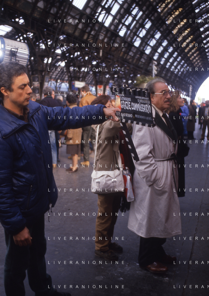 DIAP -RETROSPETTIVA UGO TOGNAZZI ATTORE NELLA FOTO UGO TOGNAZZI A MILANO NELL'ANNO 1988 SUL SET DEL FILM“I GIORNI DEL COMMISSARIO AMBROSIO“ AG ALDO LIVERANI SAS