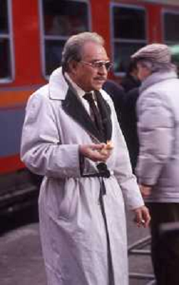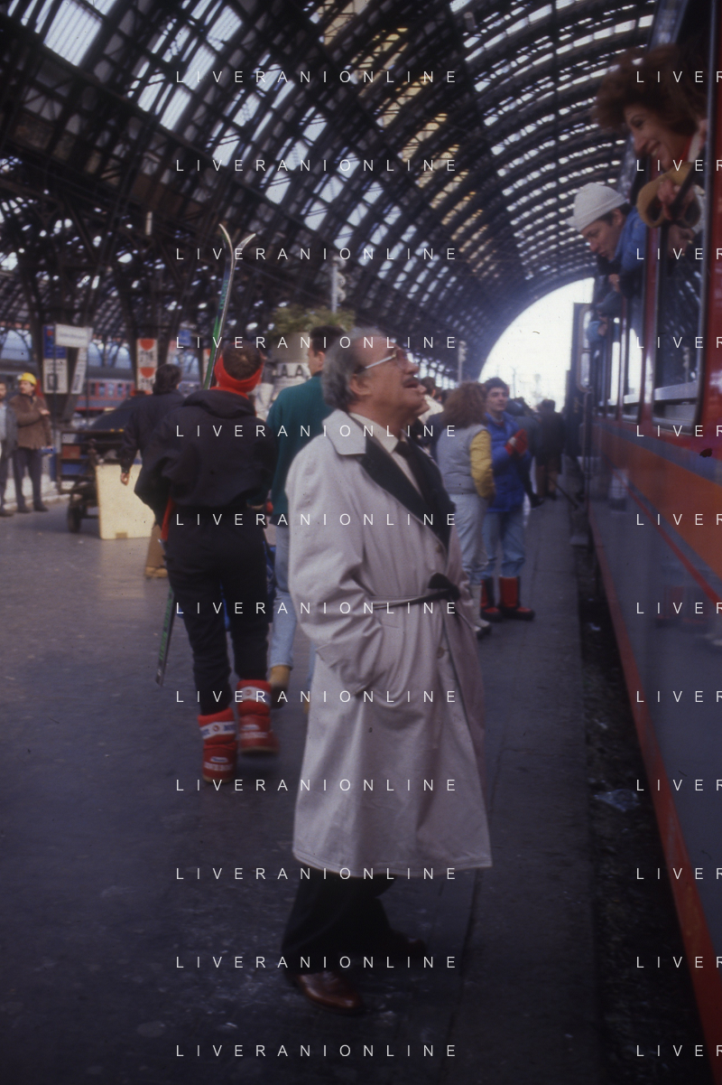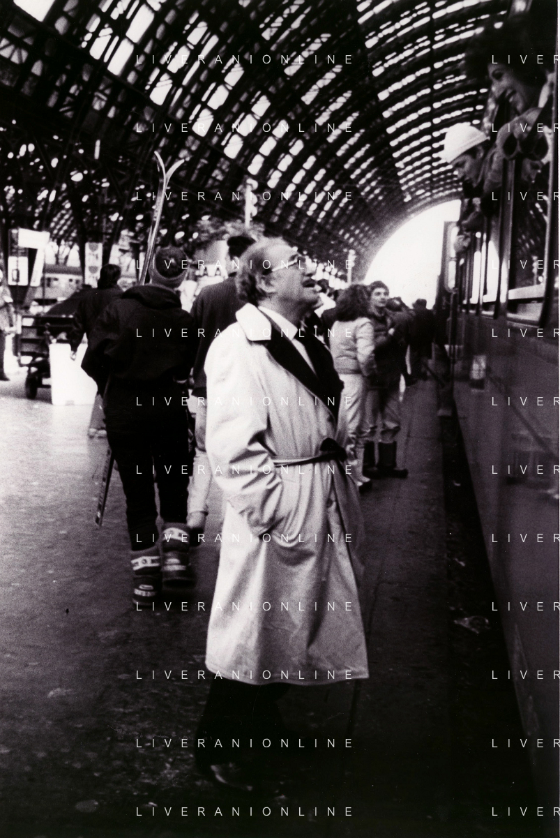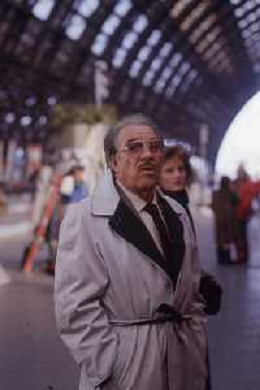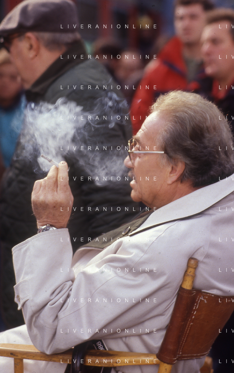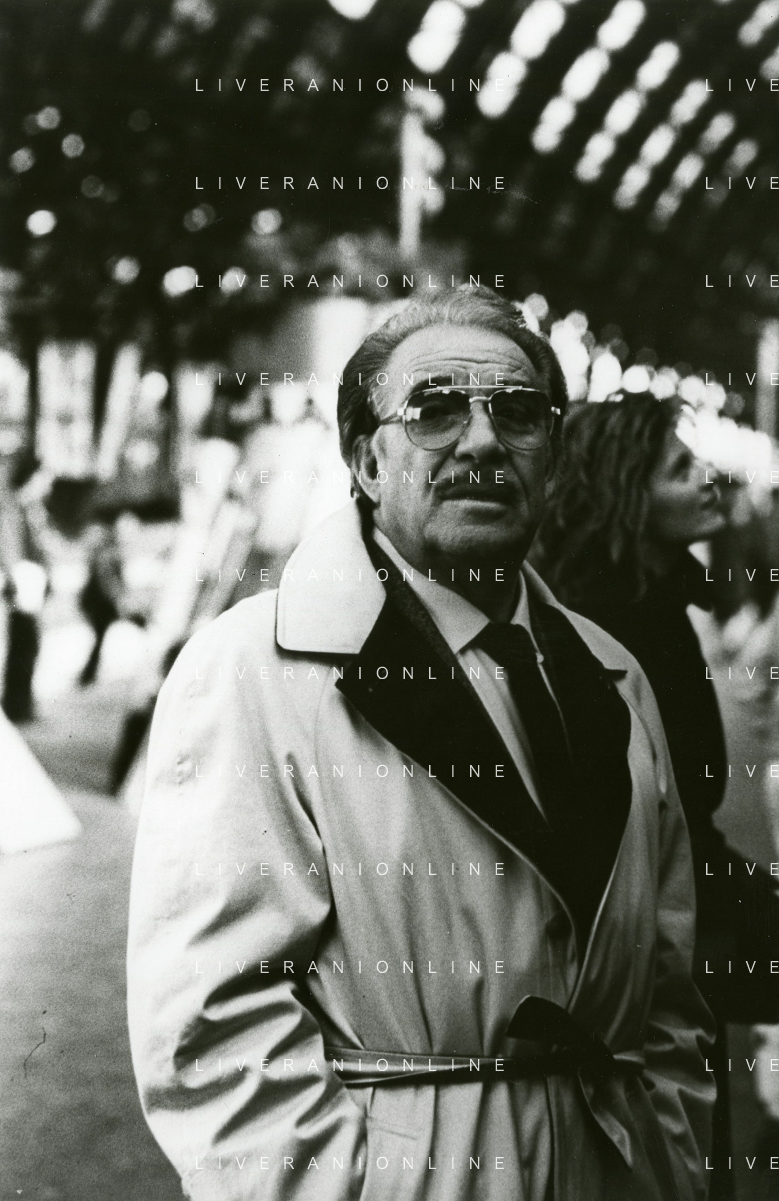 DIAP-RETROSPETTIVA UGO TOGNAZZI ATTORE NELLA FOTO UGO TOGNAZZI A MILANO NELL'ANNO 1988 SUL SET DEL FILM“I GIORNI DEL COMMISSARIO AMBROSIO“ AG ALDO LIVERANI SAS