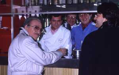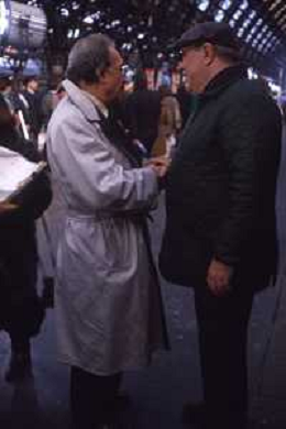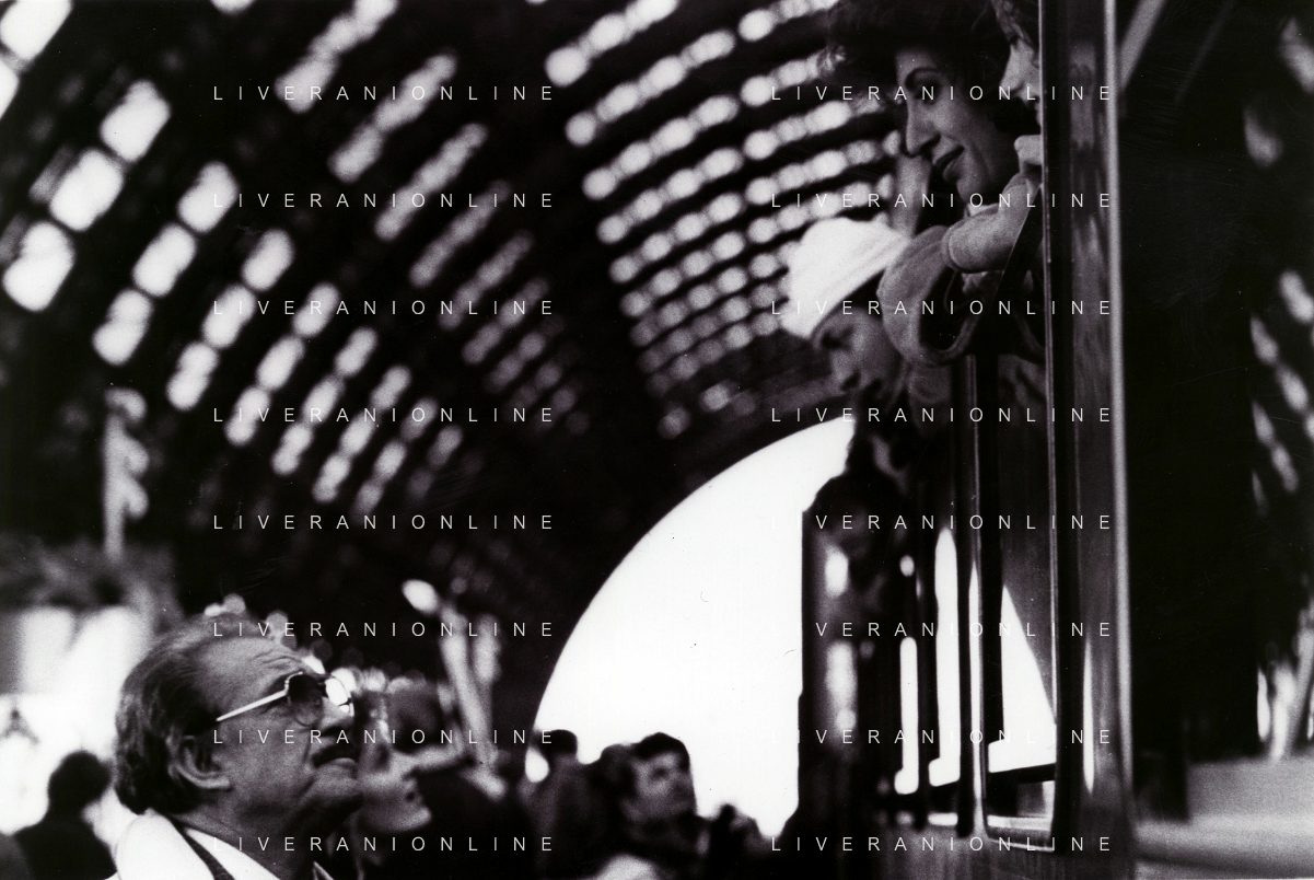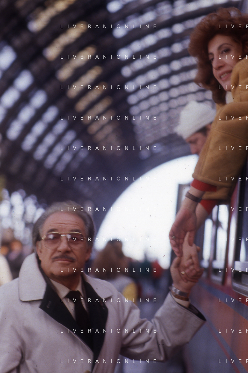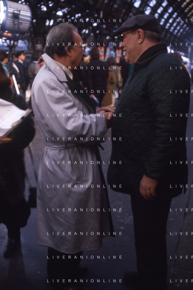 DIAP-RETROSPETTIVA UGO TOGNAZZI ATTORE NELLA FOTO UGO TOGNAZZI E ATHINA CENCI A MILANO NELL'ANNO 1988 SUL SET DEL FILM“I GIORNI DEL COMMISSARIO AMBROSIO“ AG ALDO LIVERANI SAS