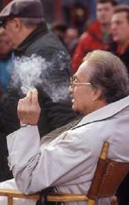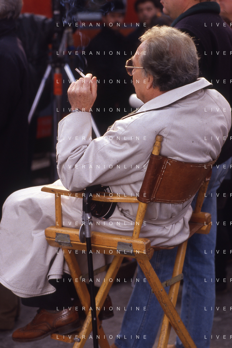 NEG -RETROSPETTIVA UGO TOGNAZZI ATTORE NELLA FOTO UGO TOGNAZZI A MILANO NELL'ANNO 1988 SUL SET DEL FILM“I GIORNI DEL COMMISSARIO AMBROSIO“ AG ALDO LIVERANI SAS