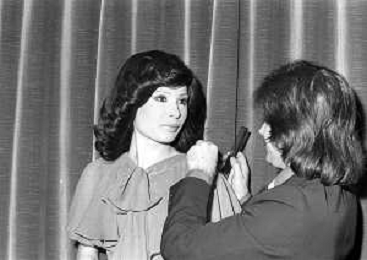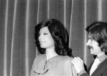 RETROSPETTIVA ROSANNA FRATELLO CANTANTE NELLA FOTO ROSANNA FRATELLO A SANREMO NELL'ANNO 1974 CON IL PARRUCCHIERE ROLANDO ELISEI AG ALDO LIVERANI SAS