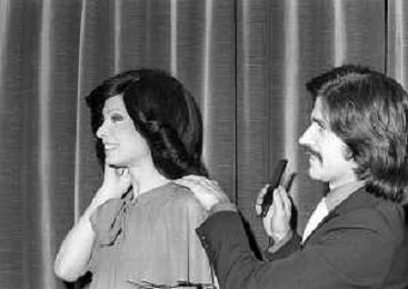 RETROSPETTIVA ROSANNA FRATELLO CANTANTE NELLA FOTO ROSANNA FRATELLO CON IL PARRUCCHIERE ROLANDO ELISEI A SANREMO NELL'ANNO 1974 AG ALDO LIVERANI SAS