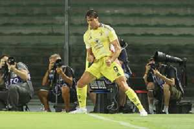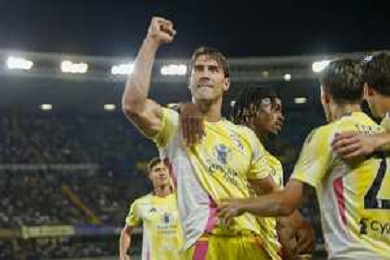 Dusan Vlahovic of Juventus FC celebrates after scoring during Hellas Verona FC vs Juventus FC, 2° Serie A Enilive 2024-25 game at Marcantonio Bentegodi Stadium in Verona (VR), Italy, on August 26, 2024. (Photo by Davide Casentini)/ AGENZIA ALDO LIVERANI SAS