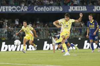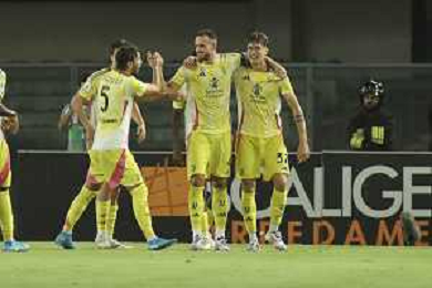 Nicolo' Savona of Juventus FC scores a goal during Hellas Verona FC vs Juventus FC, 2° Serie A Enilive 2024-25 game at Marcantonio Bentegodi Stadium in Verona (VR), Italy, on August 26, 2024. (Photo by Davide Casentini)/ AGENZIA ALDO LIVERANI SAS