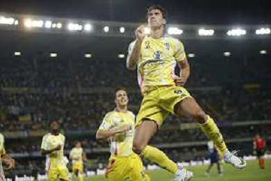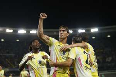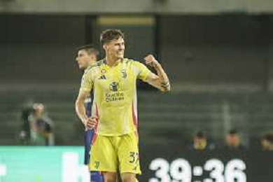 Nicolo' Savona of Juventus FC celebrates after scoring during Hellas Verona FC vs Juventus FC, 2° Serie A Enilive 2024-25 game at Marcantonio Bentegodi Stadium in Verona (VR), Italy, on August 26, 2024. (Photo by Davide Casentini)/ AGENZIA ALDO LIVERANI SAS