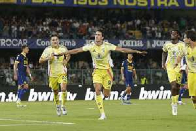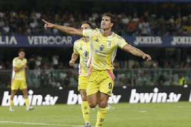 Dusan Vlahovic of Juventus FC scores a goal during Hellas Verona FC vs Juventus FC, 2° Serie A Enilive 2024-25 game at Marcantonio Bentegodi Stadium in Verona (VR), Italy, on August 26, 2024. (Photo by Davide Casentini)/ AGENZIA ALDO LIVERANI SAS