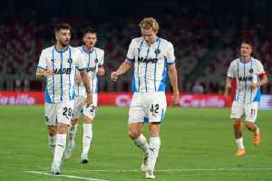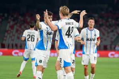 TVEM August 27, 2024 Bari, Italy - SSC Bari vs US Sassuolo - Italian soccer serie B 2024/25 - San Nicola Stadium. In the pic: Kristian Thorstvedt of US Sassuolo celebrates after scoring a goal with teammates ©Emanuele Mastrodonato/AGENZIA ALDO LIVERANI SAS