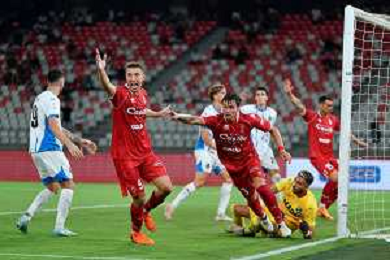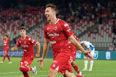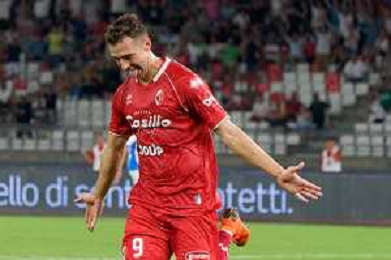 TVEM August 27, 2024 Bari, Italy - SSC Bari vs US Sassuolo - Italian soccer serie B 2024/25 - San Nicola Stadium. In the pic: Kevin Lasagna of SSC Bari celebrates after scoring a goal ©Emanuele Mastrodonato/AGENZIA ALDO LIVERANI SAS