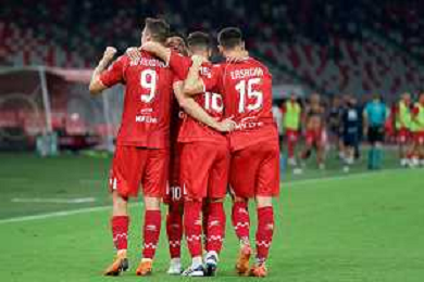 TVEM August 27, 2024 Bari, Italy - SSC Bari vs US Sassuolo - Italian soccer serie B 2024/25 - San Nicola Stadium. In the pic: Kevin Lasagna of SSC Bari celebrates after scoring a goal with teammates ©Emanuele Mastrodonato/AGENZIA ALDO LIVERANI SAS