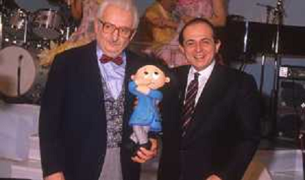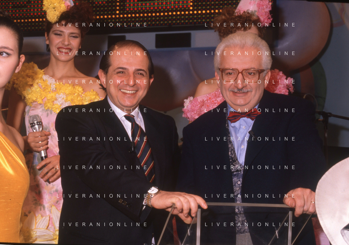 DIAP-RETROSPETTIVA GIANCARLO MAGALLI AUTORE TELEVISIVO NELLA FOTO GIANCARLO MAGALLI CON BRUNO GAMBAROTTA NELLA TRASMISSIONE TELEVISIVA “LASCIA O RADDOPPIA“ NELL'ANNO 1982 AG ALDO LIVERANI SAS