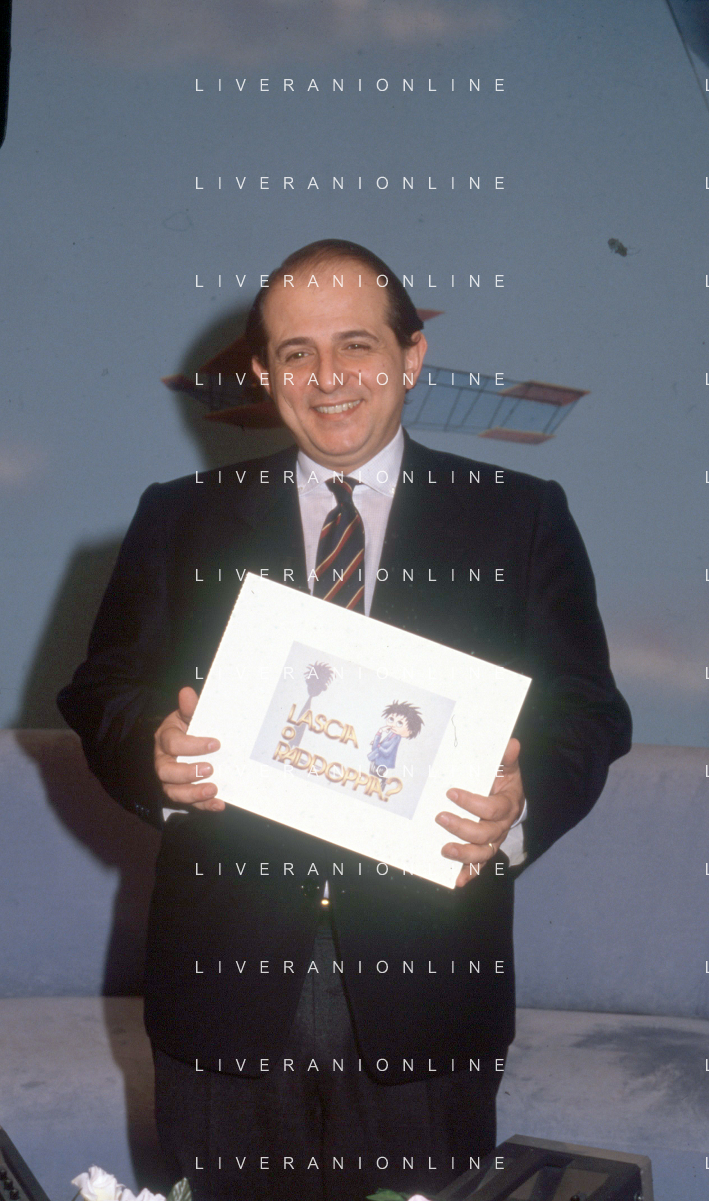 DIAP-RETROSPETTIVA GIANCARLO MAGALLI AUTORE TELEVISIVO NELLA FOTO GIANCARLO MAGALLI NELLA TRASMISSIONE TELEVISIVA “LASCIA O RADDOPPIA“ NELL'ANNO 1982 AG ALDO LIVERANI SAS