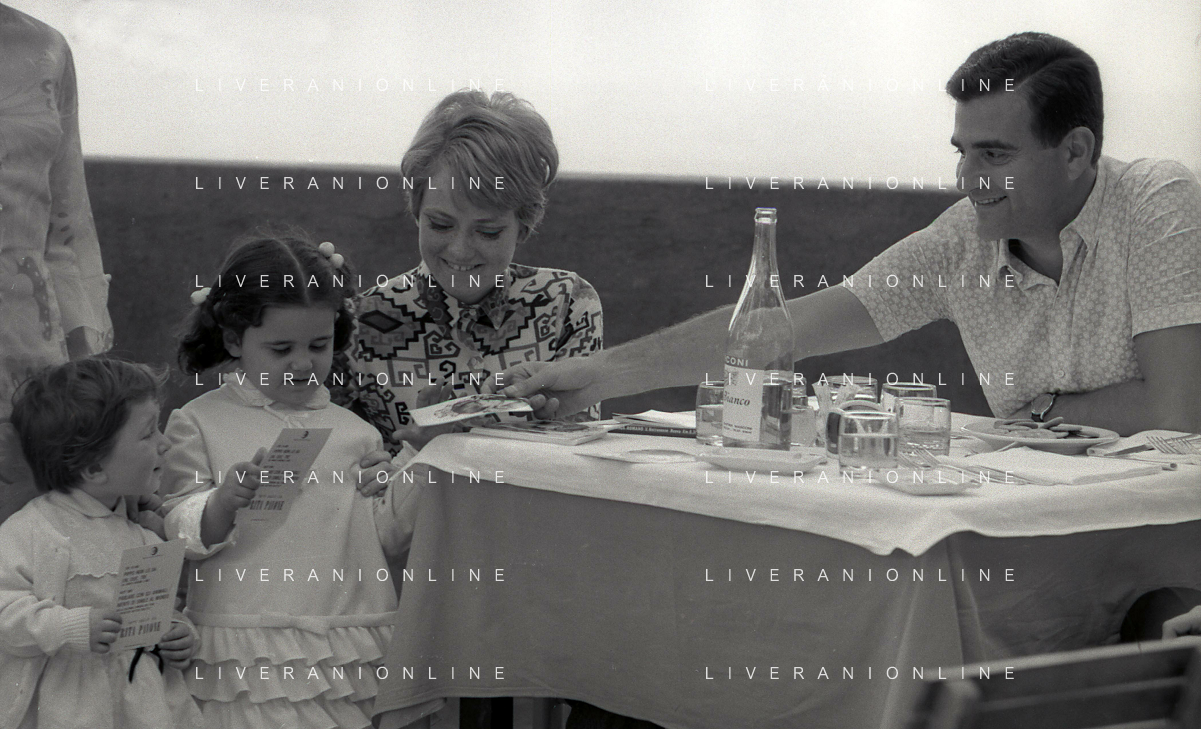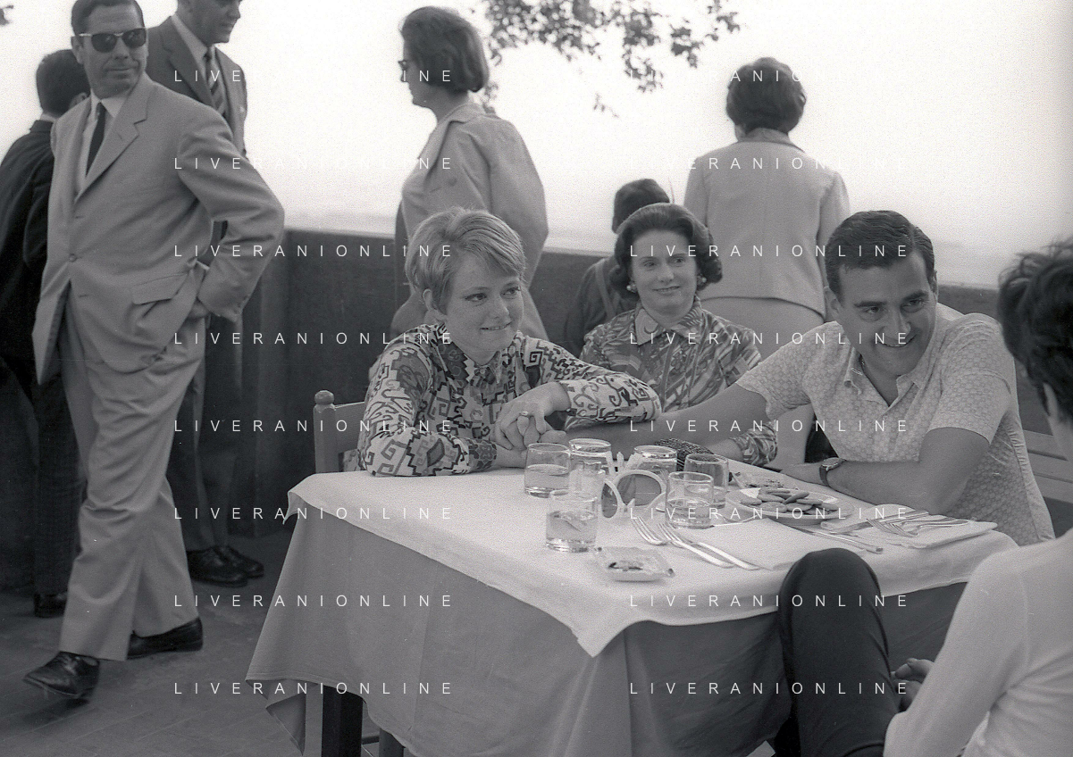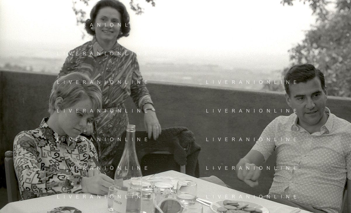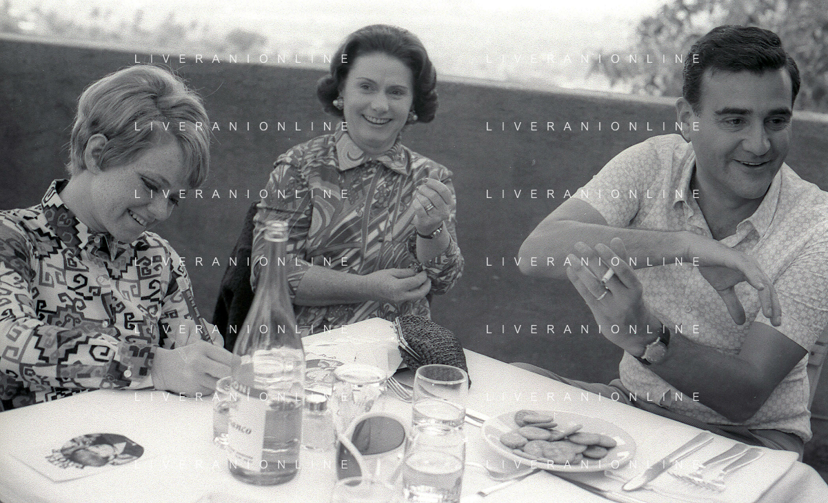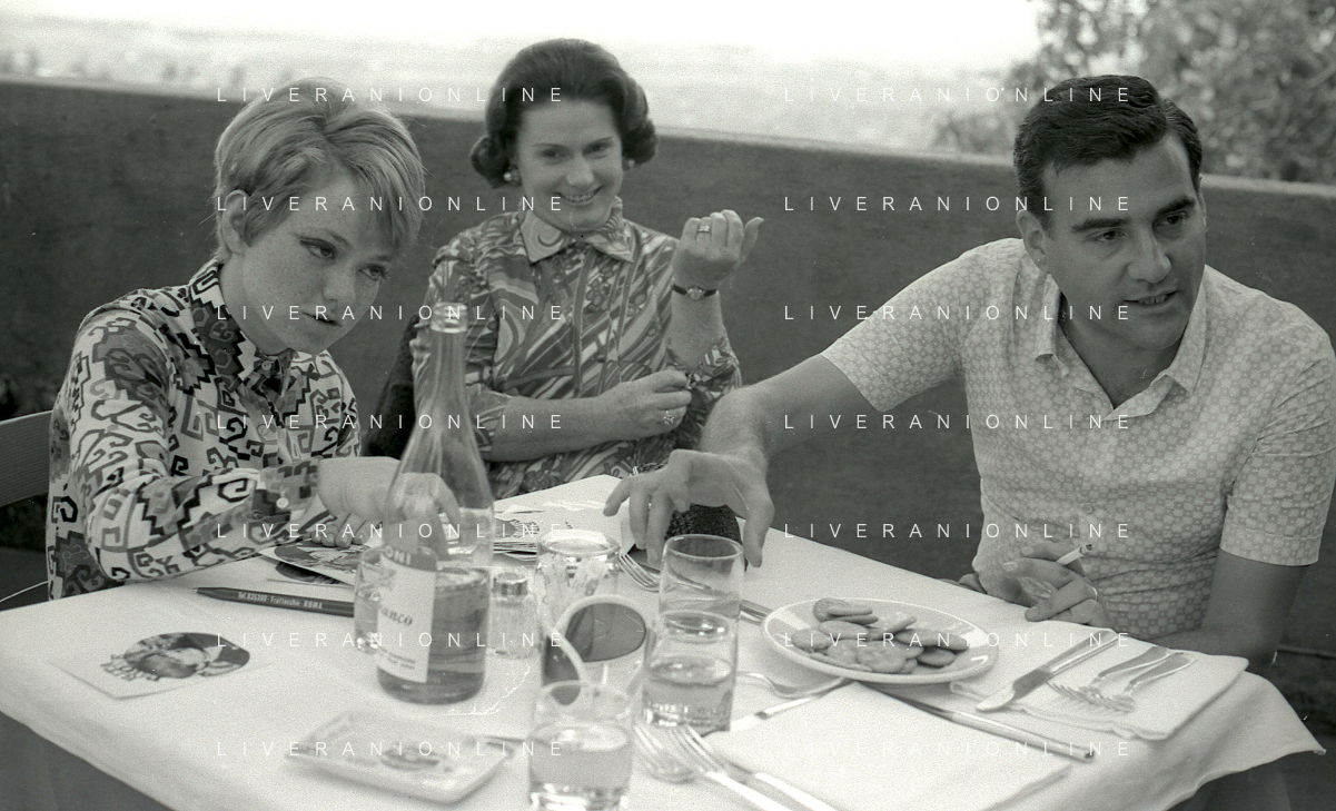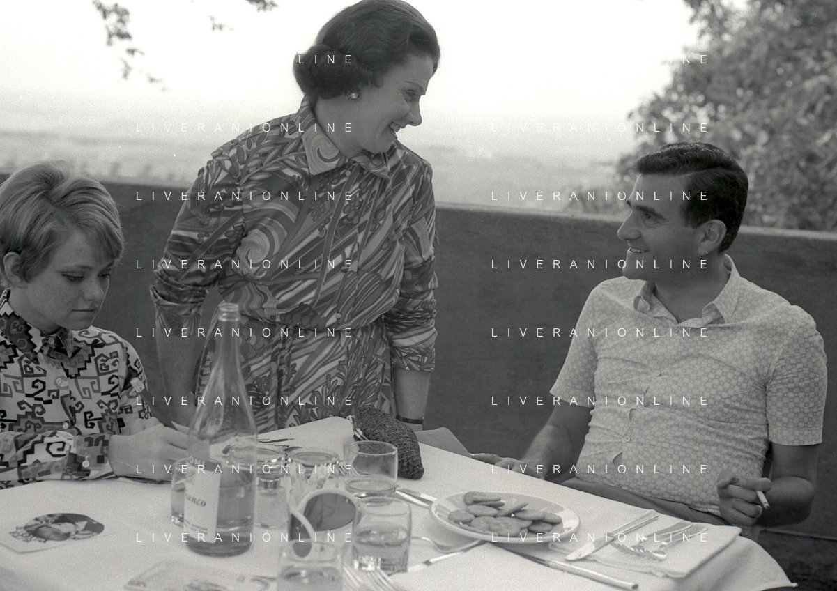 NEG-RETROSPETTIVA RITA PAVONE CANTANTE NELLA FOTO RITA PAVONE NELL'ANNO 1969 A ROMA CON LA MADRE E TEDDY RENO AG ALDO LIVERANI SAS