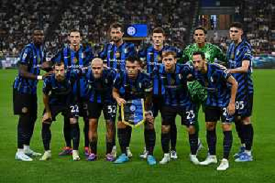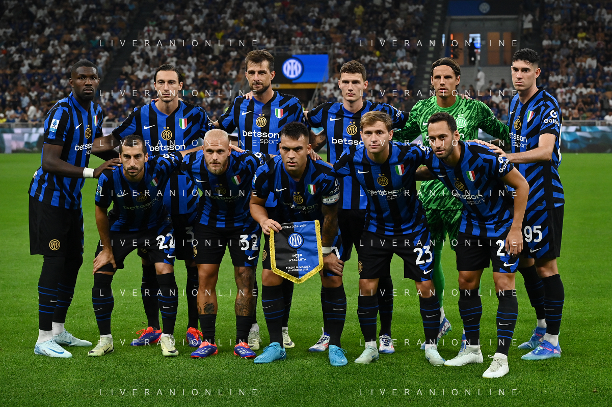 Inter vs Atalanta nella foto formazione Inter, in piedi da SX Marcus Thuram, Matteo Darmian, Francesco Acerbi, Benjamin Pavard, Yann Sommer e Alessandro Bastoni; in basso da SX Henrikh Mkhitaryan, Federico Dimarco, Lautaro Martinez, Nicolo' Barella e Hakan Calhanoglu Milano 30-08-2024 Stadio Giuseppe Meazza - San Siro Campionato Serie A Enilive - 3a giornata foto Roberto Garavaglia/Agenzia Aldo Liverani sas
