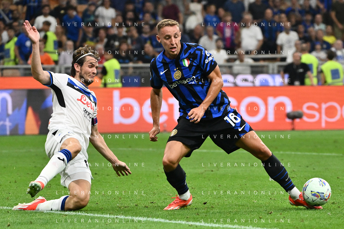 Inter vs Atalanta nella foto Davide Frattesi (Inter) e sulla SX Marten de Roon (Atalanta) Milano 30-08-2024 Stadio Giuseppe Meazza - San Siro Campionato Serie A Enilive - 3a giornata foto Roberto Garavaglia/Agenzia Aldo Liverani sas
