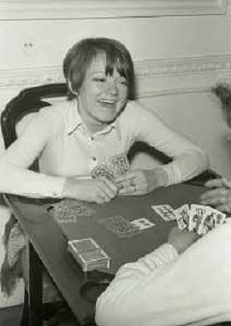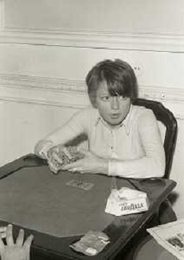 NEG-RETROSPETTIVA RITA PAVONE CANTANTE NELLA FOTO RITA PAVONE NELL'ANNO 1970 A SANREMO GIOCA A CARTE AG ALDO LIVERANI SAS