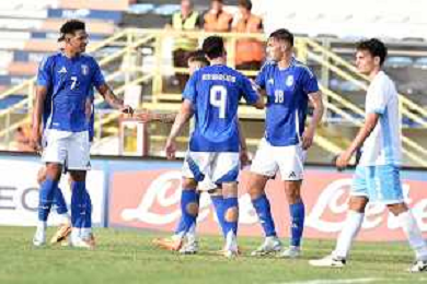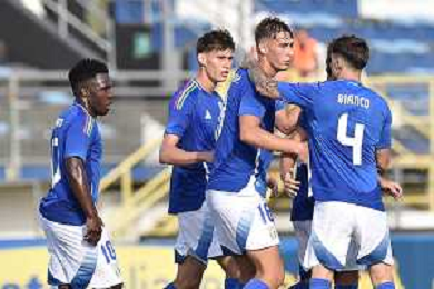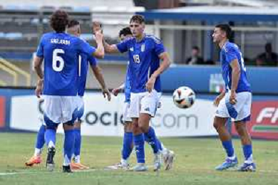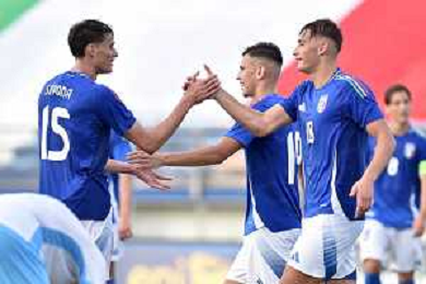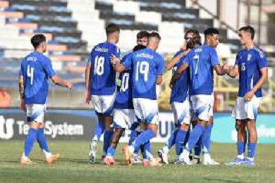 Italia U21 vs San Marino U21 - Turno di qualificazione - 13 Giornata - Stadio D.Francioni - Latina 05-09-2024 nella foto Esultanza Italia terzo gol FOTO FEDERICO GAETANO-AG ALDO LIVERANI SAS