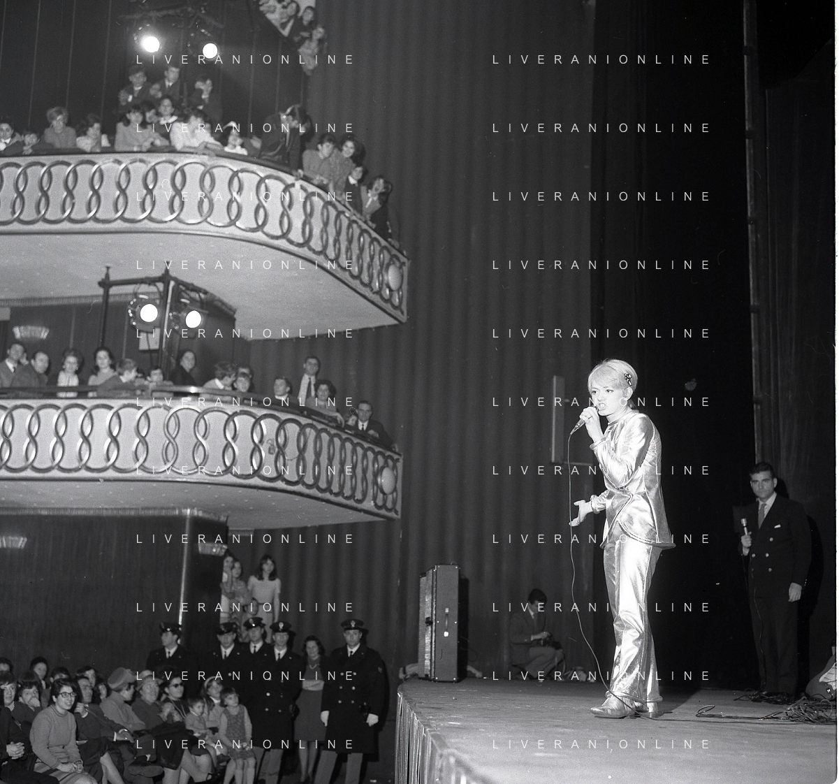 NEG-RETROSPETTIVA RITA PAVONE CANTANTE NELLA FOTO RITA PAVONE A MILANO NELL'ANNO 1968 AL TEATRO LIRICO IN UNA SUA ESIBIZIONE CANORA AG ALDO LIVERANI SAS