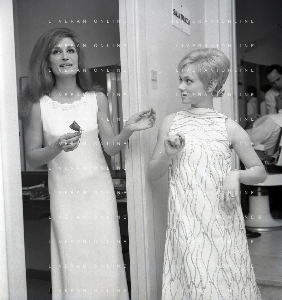NEG-RETROSPETTIVA RITA PAVONE CANTANTE NELLA FOTO RITA PAVONE CON DALIDA NELLA TRASMISSIONE TELEVISIVA"PARTITISSIMA" NELL'ANNO 1968 AG ALDO LIVERANI SAS