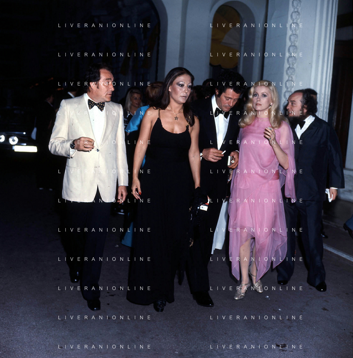 COL-RETROSPETTIVA UGO TOGNAZZI ATTORE NELLA FOTO UGO TOGNAZZI CON FRANCA BETTOIA MARCELLO MASTROIANNI CATHERINE DENEUVE E GIANMARCO FERRERI NELL'ANNO \973 A CANNES AG ALDO LIVERANI SAS