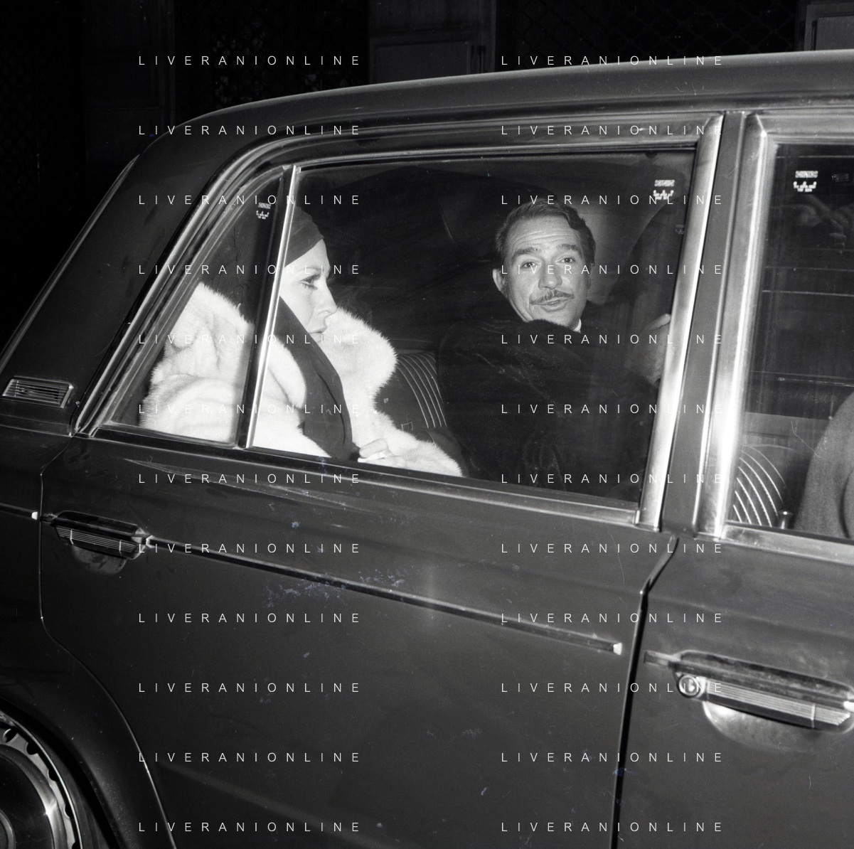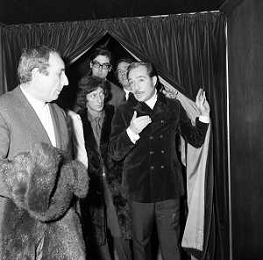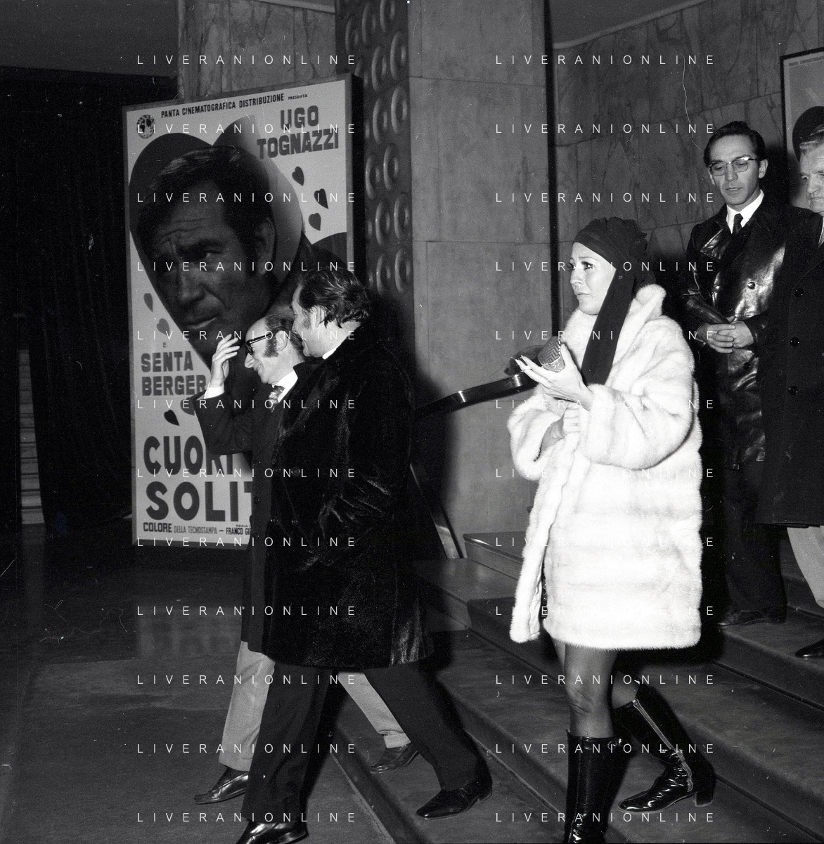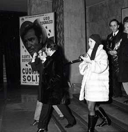 NEG-RETROSPETTIVA UGO TOGNAZZI ATTORE NELLA FOTO UGO TOGNAZZI CON LA MOGLI FRANCA BETTOIA A MILANO NELL'ANNO 1970 ALLA PRIMA DI “CUORI SOLITARI “ AG ALDO LIVERANI SAS