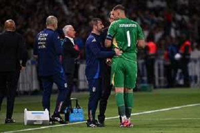 TVRG Francia vs Italia nella foto Gianluigi Donnarumma (Italia) verifica con lo staff medico un dolore alla schiena Parigi (FRA) 06-09-2024 Stadio Parco dei Principi UEFA Nations League - Lega A Gruppo A2 - 1a giornata foto Roberto Garavaglia/Agenzia Aldo Liverani sas