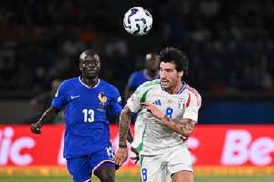TVRG Francia vs Italia nella foto Sandro Tonali (Italia) e sulla SX N'Golo Kantè (Francia) Parigi (FRA) 06-09-2024 Stadio Parco dei Principi UEFA Nations League - Lega A Gruppo A2 - 1a giornata foto Roberto Garavaglia/Agenzia Aldo Liverani sas
