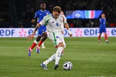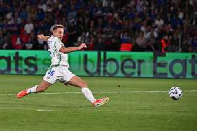 TVRG Francia vs Italia nella foto Giacomo Raspadori (Italia) segna il gol del 3 a 1 Parigi (FRA) 06-09-2024 Stadio Parco dei Principi UEFA Nations League - Lega A Gruppo A2 - 1a giornata foto Roberto Garavaglia/Agenzia Aldo Liverani sas