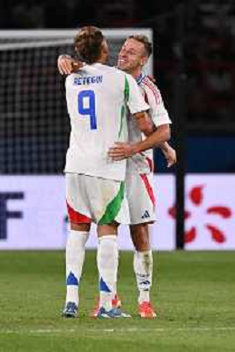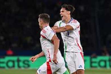 TVRG Francia vs Italia nella foto Davide Frattesi (Italia) e Andrea Cambiaso (Italia) esultanza dopo il gol del 2 a 1 Parigi (FRA) 06-09-2024 Stadio Parco dei Principi UEFA Nations League - Lega A Gruppo A2 - 1a giornata foto Roberto Garavaglia/Agenzia Aldo Liverani sas