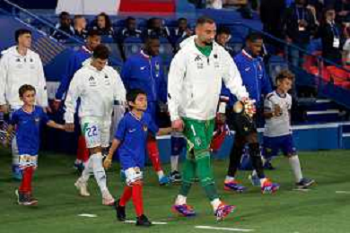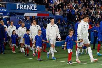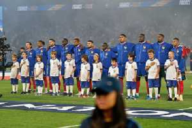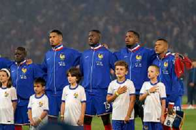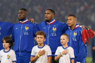 TVEM September 6, 2024 in Paris, France. France vs Italy, UEFA Nations League 2024/25 League A Group A2 match - Parc des Princes Stadium. In the pic: Players of France line up during the National Anthems/AGENZIA ALDO LIVERANI SAS