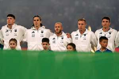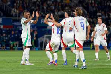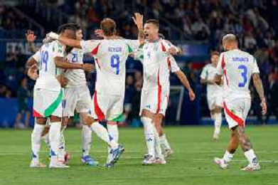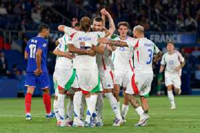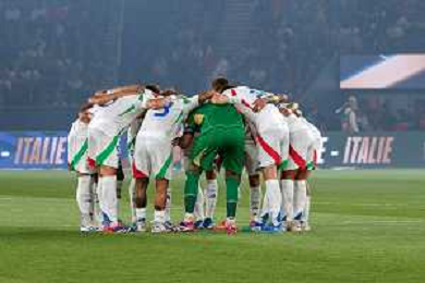 TVEM September 6, 2024 in Paris, France. France vs Italy, UEFA Nations League 2024/25 League A Group A2 match - Parc des Princes Stadium. In the pic: The Italy players hug each other/AGENZIA ALDO LIVERANI SAS