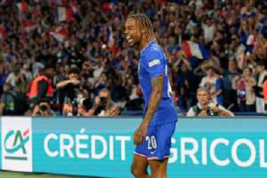 TVEM September 6, 2024 in Paris, France. France vs Italy, UEFA Nations League 2024/25 League A Group A2 match - Parc des Princes Stadium. In the pic: Bradley Barcola of France celebrates after scoring a goal/AGENZIA ALDO LIVERANI SAS