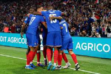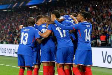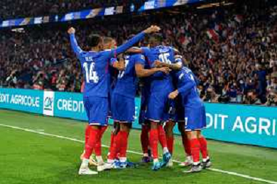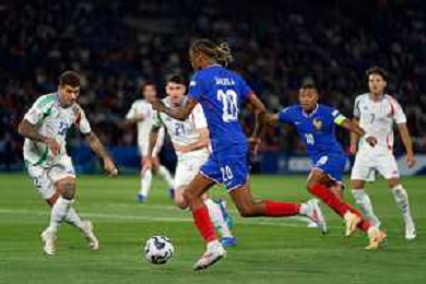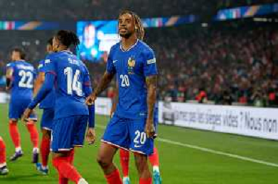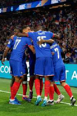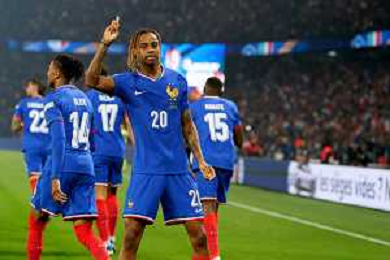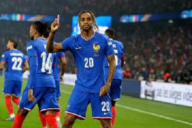 TVEM September 6, 2024 in Paris, France. France vs Italy, UEFA Nations League 2024/25 League A Group A2 match - Parc des Princes Stadium. In the pic: Bradley Barcola of France celebrates after scoring a goal with teammates/AGENZIA ALDO LIVERANI SAS