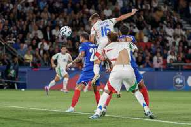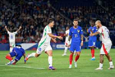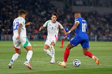 TVEM September 6, 2024 in Paris, France. France vs Italy, UEFA Nations League 2024/25 League A Group A2 match - Parc des Princes Stadium. In the pic: Giacomo Raspadori of Italy scores a goal of 1-3/AGENZIA ALDO LIVERANI SAS