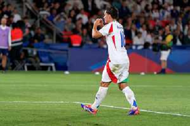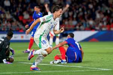 TVEM September 6, 2024 in Paris, France. France vs Italy, UEFA Nations League 2024/25 League A Group A2 match - Parc des Princes Stadium. In the pic: Giacomo Raspadori of Italy celebrates after scoring a goal/AGENZIA ALDO LIVERANI SAS