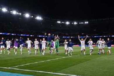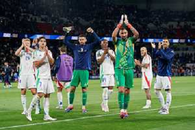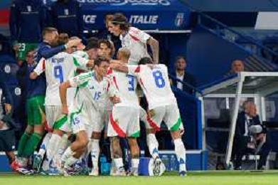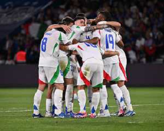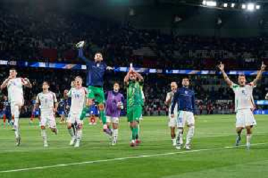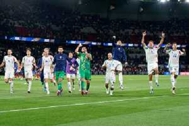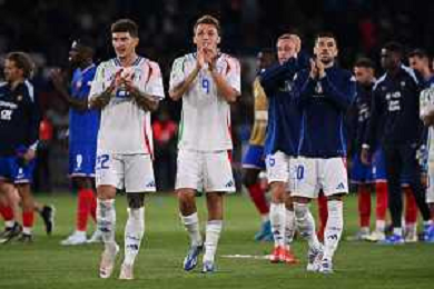 TVEM September 6, 2024 in Paris, France. France vs Italy, UEFA Nations League 2024/25 League A Group A2 match - Parc des Princes Stadium. In the pic: players of Italy celebrates the victory ©Emanuele Mastrodonato/AGENZIA ALDO LIVERANI SAS