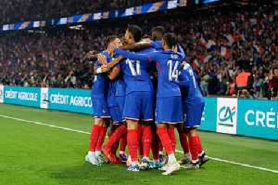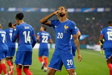 TVEM September 6, 2024 in Paris, France. France vs Italy, UEFA Nations League 2024/25 League A Group A2 match - Parc des Princes Stadium. In the pic Bradley Barcola of France celebrates after scoring a goal with teammates ©Emanuele Mastrodonato/AGENZIA ALDO LIVERANI SAS