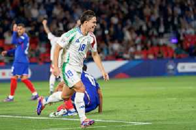 TVRG Francia vs Italia nella foto Giacomo Raspadori (Italia) segna il gol del 3 a 1 Parigi (FRA) 06-09-2024 Stadio Parco dei Principi UEFA Nations League - Lega A Gruppo A2 - 1a giornata foto Roberto Garavaglia/Agenzia Aldo Liverani sas