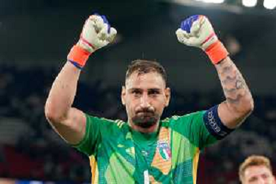TVEM September 6, 2024 in Paris, France. France vs Italy, UEFA Nations League 2024/25 League A Group A2 match - Parc des Princes Stadium. In the pic: Gianluigi Donnarumma of Italy celebrates the victory ©Emanuele Mastrodonato/AGENZIA ALDO LIVERANI SAS