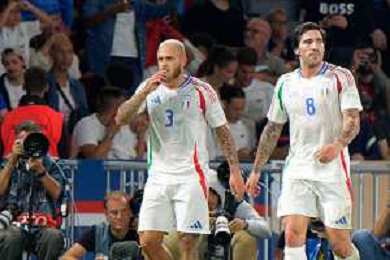 TVEM September 6, 2024 in Paris, France. France vs Italy, UEFA Nations League 2024/25 League A Group A2 match - Parc des Princes Stadium. In the pic: Davide Frattesi of Italy celebrates after scoring a goal with teammates foto e.mastrodonato-ag aldo liverani sas