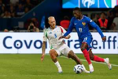 TVEM September 6, 2024 in Paris, France. France vs Italy, UEFA Nations League 2024/25 League A Group A2 match - Parc des Princes Stadium. In the pic: Ousmane Dembélé of France in action against Federico Dimarco of Italy foto e.mastrodonato-ag aldo liverani sas