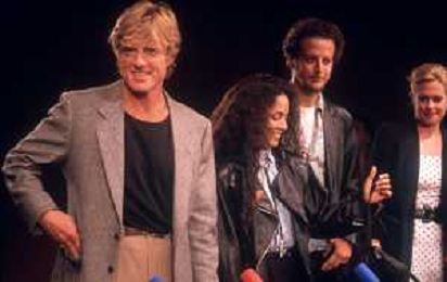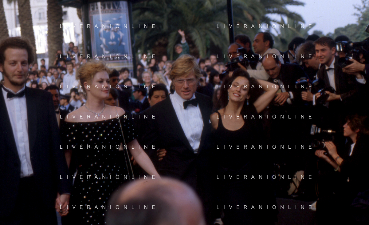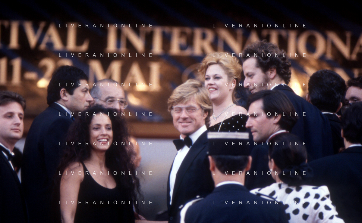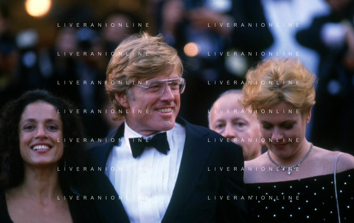 DIA- RETROSPETTIVA ROBERT REDFORD ATTORE E REGISTA NELLA FOTO ROBERT REDFORD CON SONIA BRAGA, MELANIE GRIFFITH A CANNES NELL’ANNO 1988 ©DFP- AGENZIA ALDO LIVERANI SAS