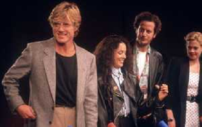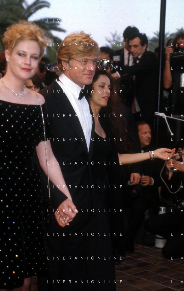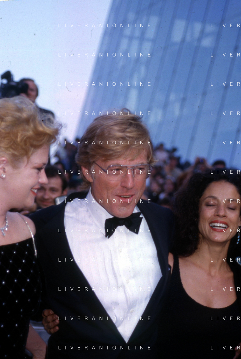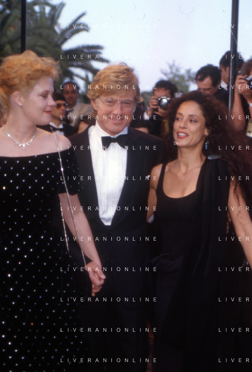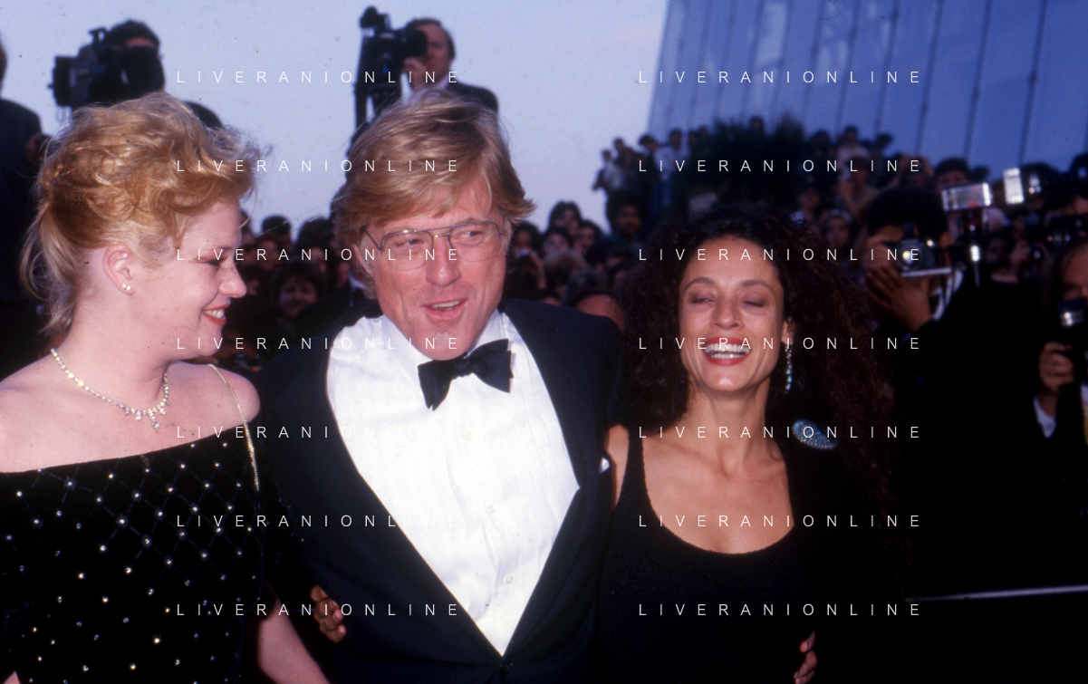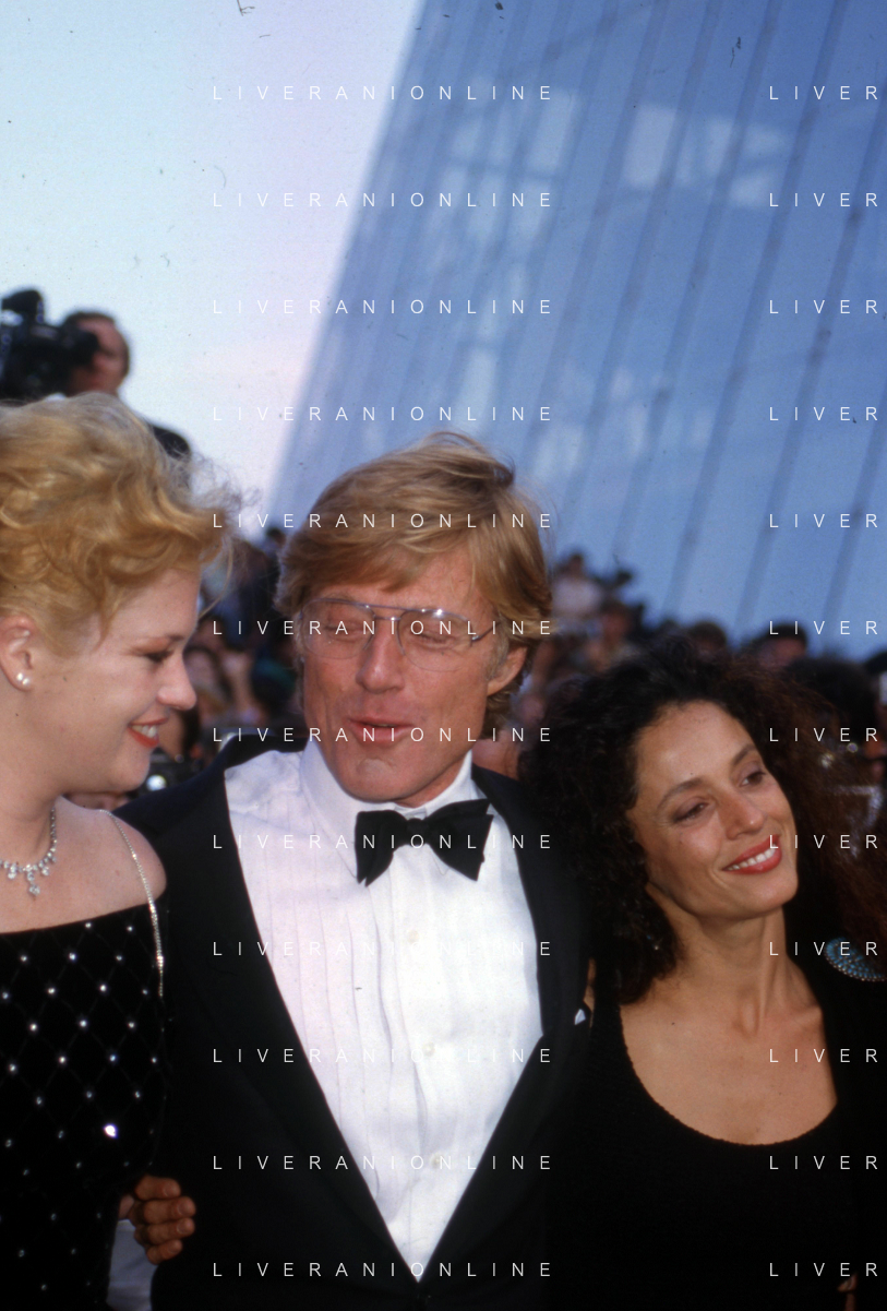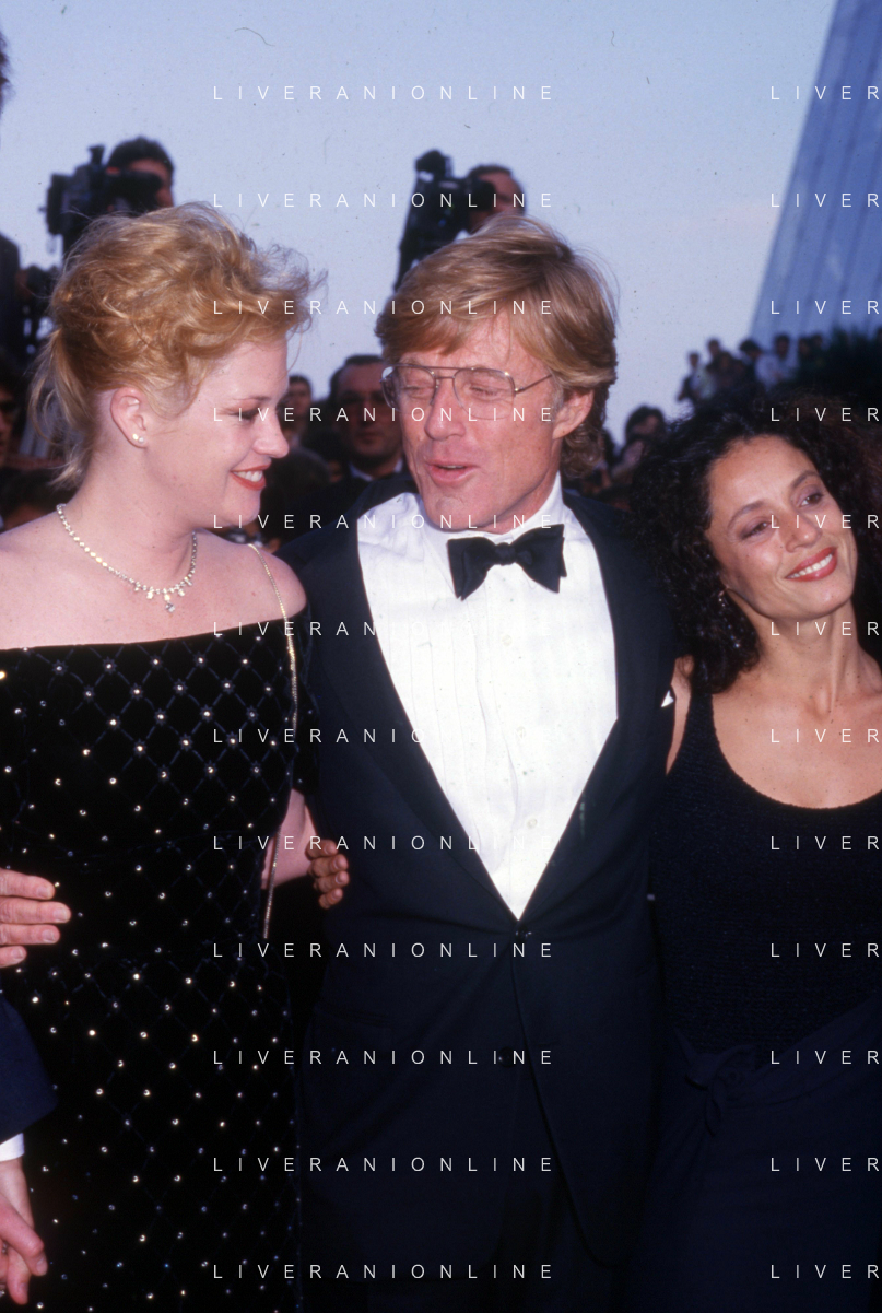 DIA- RETROSPETTIVA ROBERT REDFORD ATTORE E REGISTA NELLA FOTO ROBERT REDFORD CON SONIA BRAGA E MELANIE GRIFFITH A CANNES NELL’ANNO 1988 ©CONTROLUCE- AGENZIA ALDO LIVERANI SAS