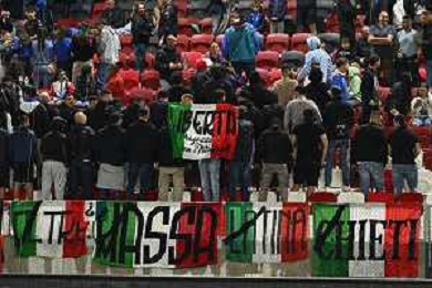 TVRG Israele vs Italia nella foto tifosi Italia voltano le spalle al campo durante l'inno di Israele Budapest (HUN) 09-09-2024 Bozsik Arena UEFA Nations League - Lega A Gruppo A2 - 2a giornata foto Roberto Garavaglia/Agenzia Aldo Liverani sas