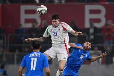 TVRG Israele vs Italia nella foto Federico Dimarco (Italia) Budapest (HUN) 09-09-2024 Bozsik Arena UEFA Nations League - Lega A Gruppo A2 - 2a giornata foto Roberto Garavaglia/Agenzia Aldo Liverani sas
