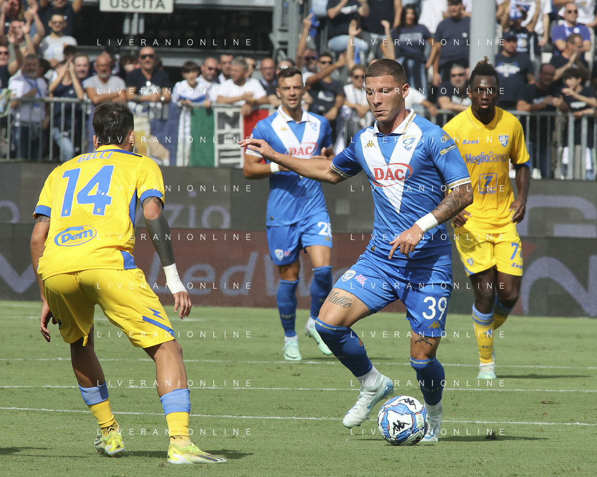 during Brescia Calcio vs Frosinone Calcio, 5° Serie B BKT 2024-25 game at Mario Rigamonti stadium in Brescia (BS), Italy, on September 14, 2024. (Photo by Davide Casentini) ag aldo liverai sas