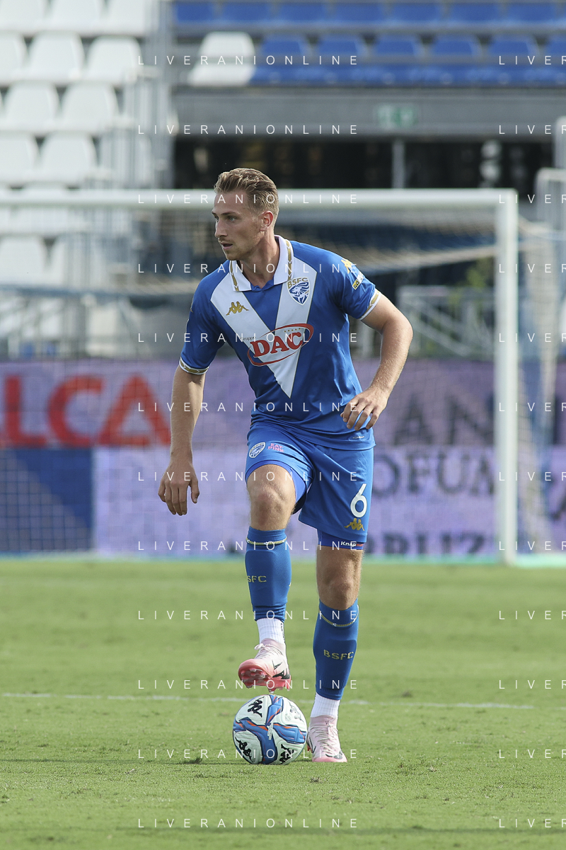 Matthias Verreth of Brescia Calcio FC play the ball during Brescia Calcio vs Frosinone Calcio, 5° Serie B BKT 2024-25 game at Mario Rigamonti stadium in Brescia (BS), Italy, on September 14, 2024. (Photo by Davide Casentini) ag aldo liverai sas
