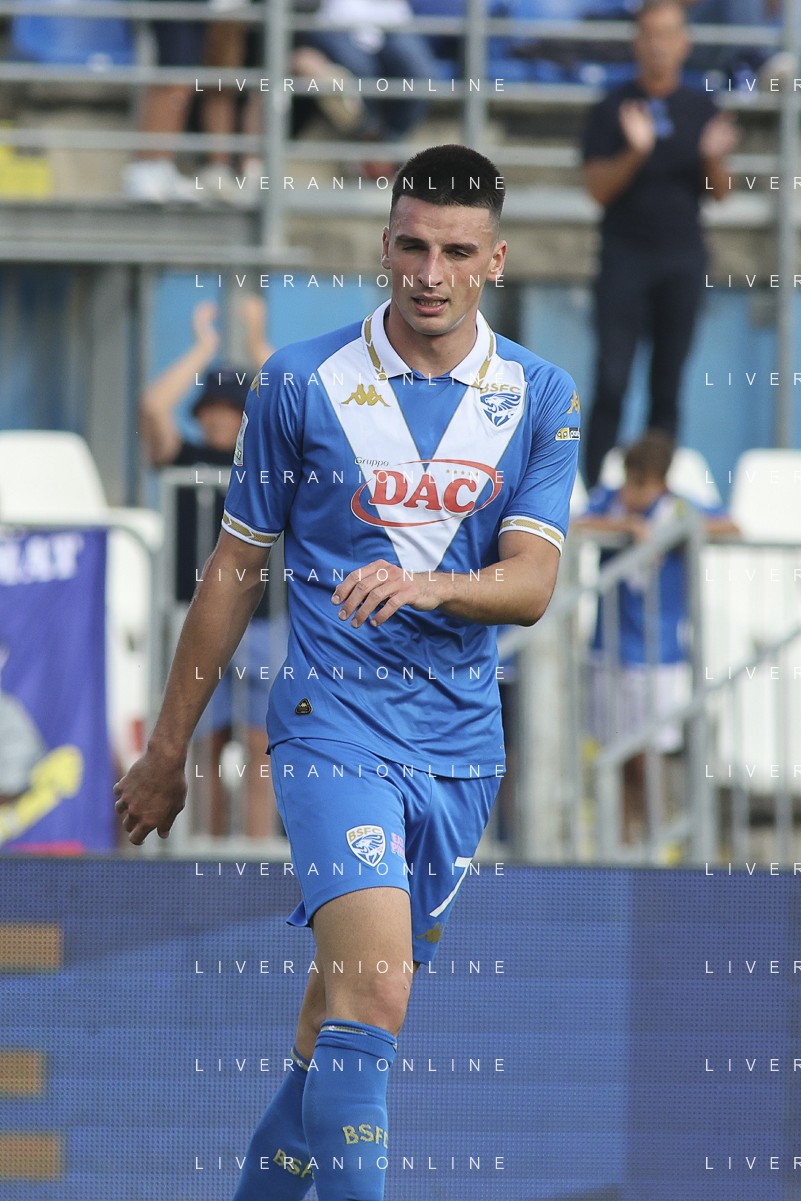 Ante Matej Juric of Brescia Calcio FCduring Brescia Calcio vs Frosinone Calcio, 5° Serie B BKT 2024-25 game at Mario Rigamonti stadium in Brescia (BS), Italy, on September 14, 2024. (Photo by Davide Casentini) ag aldo liverai sas